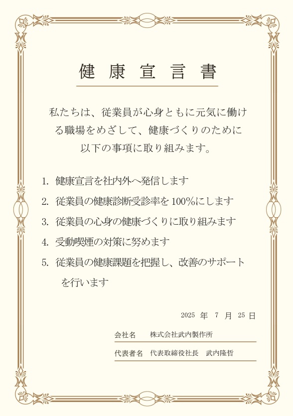 公司新闻 HOME 公司新闻 健康経営優良法人2026の認定へ向け、健康宣言を行いました。 2025.07.09 公司新闻 健康経営優良法人2026の認定へ向け、健康宣言を行いました。 健康経営優良法人2026の認定へ向け、健康宣言を行いました。 無理なことを強いることはなく、従業員が自然に前向きに参加できるような活動を目指していきます。 Next article Back to index Prev. article