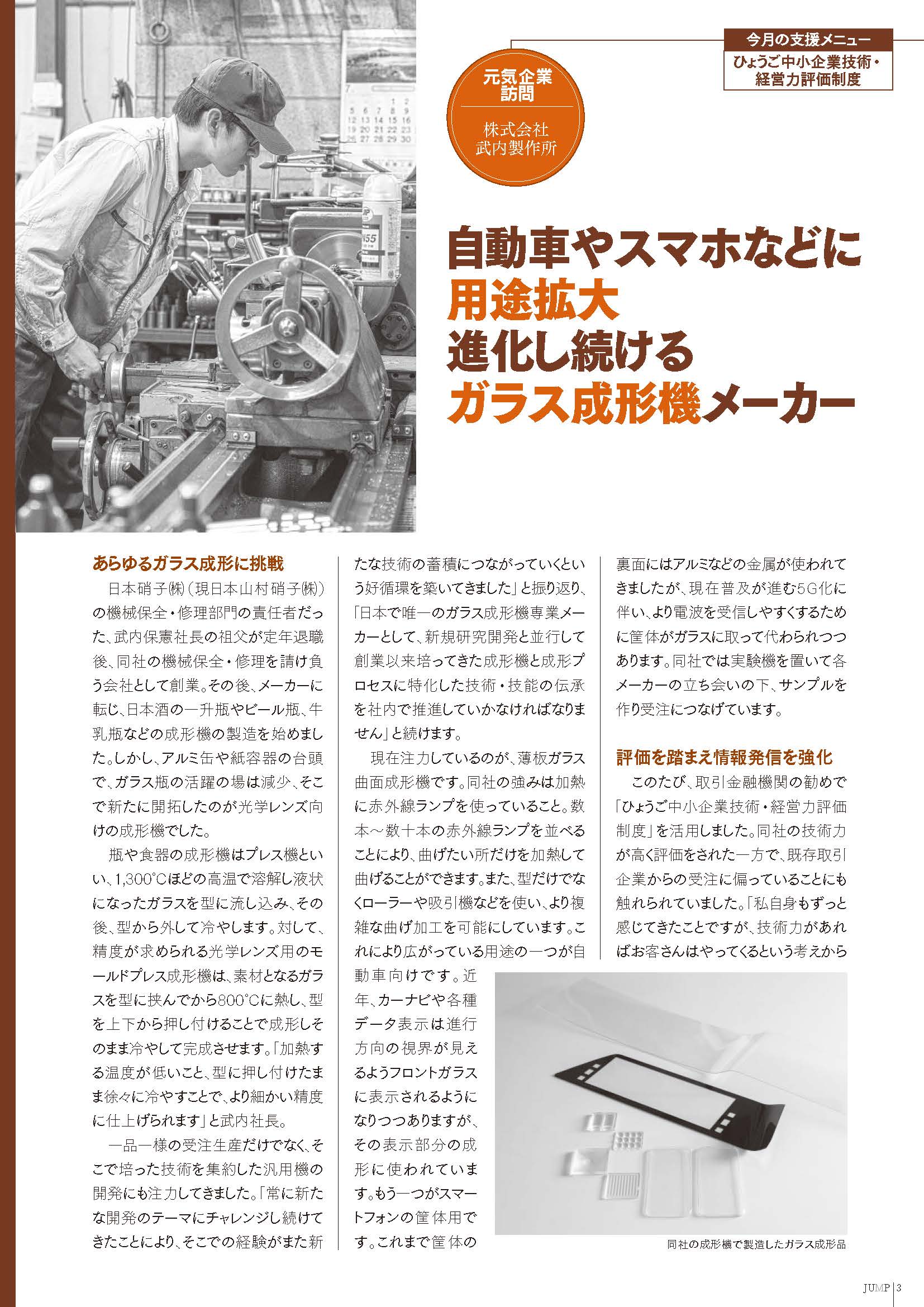 NEWS HOME NEWS 我公司在兵库县的经济信息杂志“JUMP”上被介绍了。 2020.08.20 NEWS 我公司在兵库县的经济信息杂志“JUMP”上被介绍了。 我公司在兵库县的经济信息杂志“JUMP”上被介绍了。该杂志是兵库县政府的月刊杂志,除了介绍种种信息以外还介绍在县内具有力量的企业情况。这次在封一上介绍了我公司。 Next article Back to index Prev. article