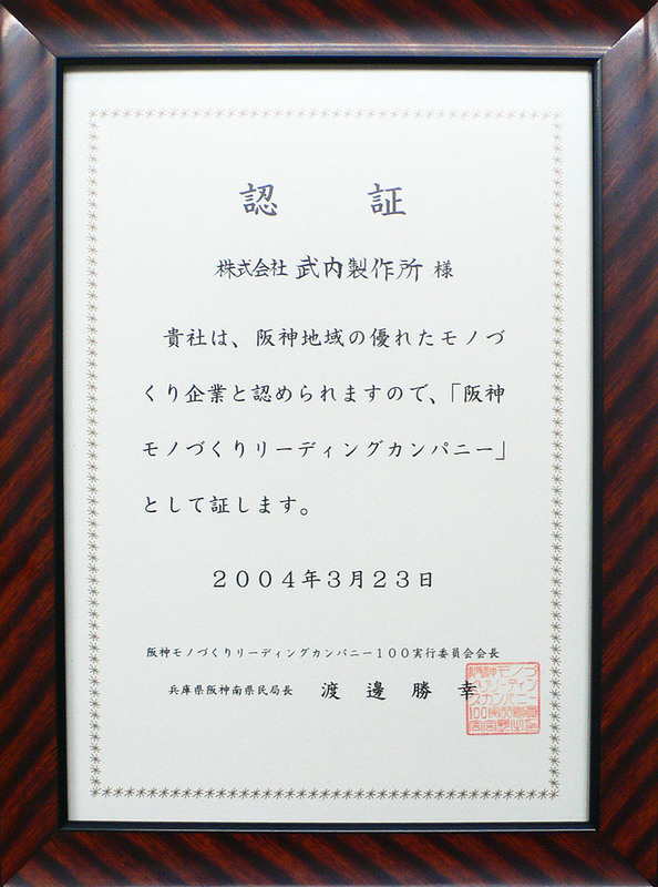 お知らせ ホーム お知らせ Recognized as one of the top 100 manufacturers in the Kobe-Osaka area. 2004.03.23 お知らせ Recognized as one of the top 100 manufacturers in the Kobe-Osaka area. Recognized as one of the top 100 manufacturers in the Kobe-Osaka area. 次の記事へ 一覧へ戻る 前の記事へ