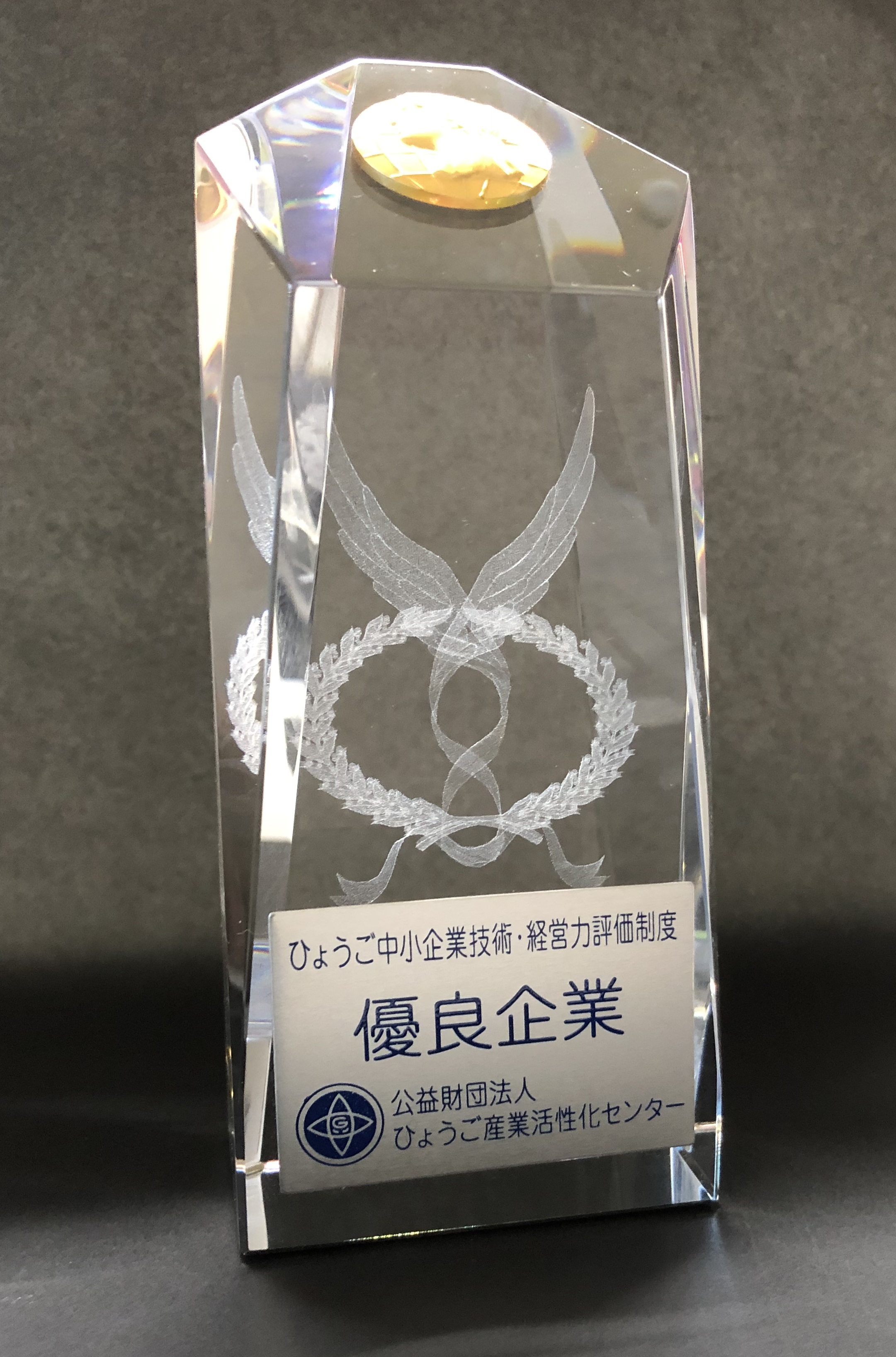 兵庫県の「ひょうご中小企業技術・経営力評価制度」で優良企業と認定され、トロフィーを授与されました。